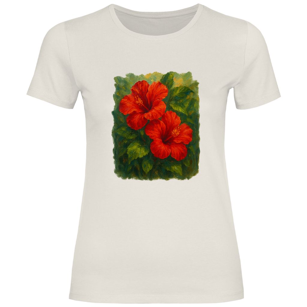Step into effortless charm with the Chemparthy Tee, where art meets comfort. Featuring a stunning print of vivid red hibiscus blooms set against lush green leaves, this shirt captures the spirit of tropical beauty and fresh beginnings. Its timeless crew neckline, flattering feminine fit, and breathable lightweight cotton make it perfect for everything from a relaxed weekend at home to an eye-catching look on the go. Whether paired with jeans, shorts, or a flowy skirt, the Chemparthy Tee lets your style blossom naturally.