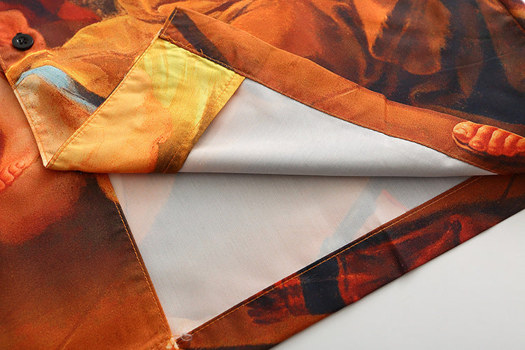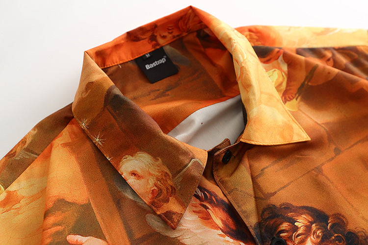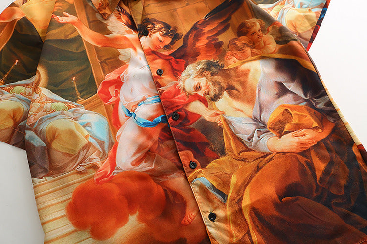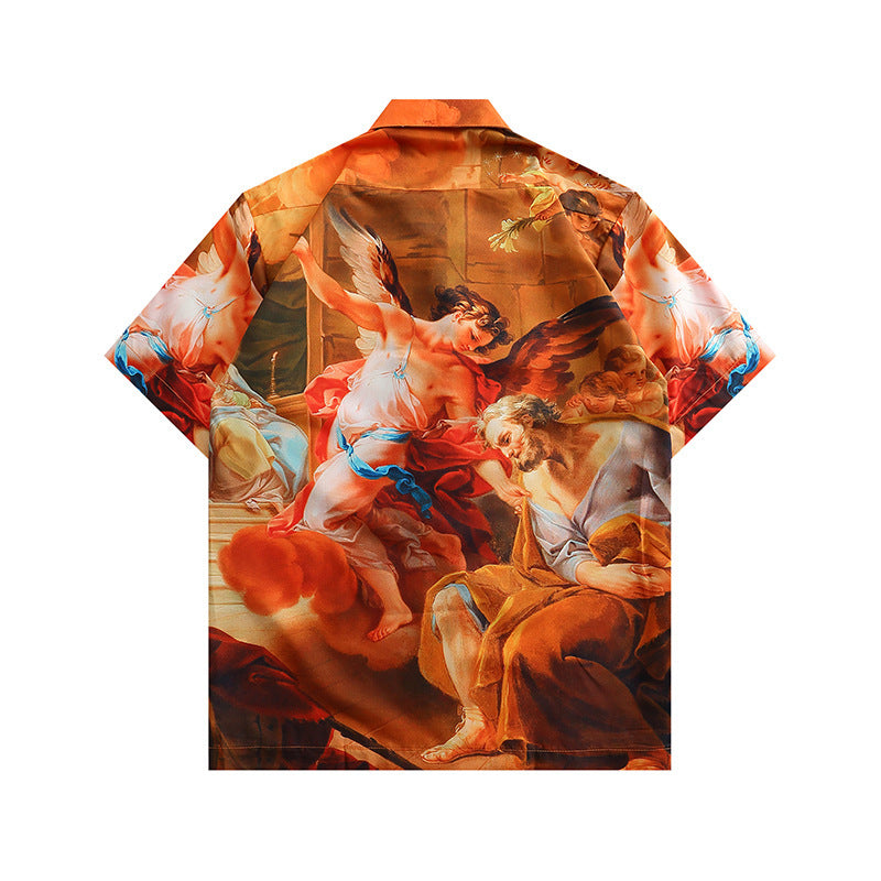 Step into timeless elegance with the Renaissance Angelic Art Shirt, featuring a stunning all-over print inspired by classical Renaissance paintings. The rich blend of warm tones and angelic motifs creates a masterpiece on fabric, while its lightweight, short-sleeve design makes it perfect for summer outings with a touch of vintage sophistication.