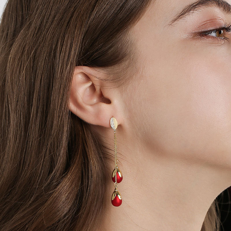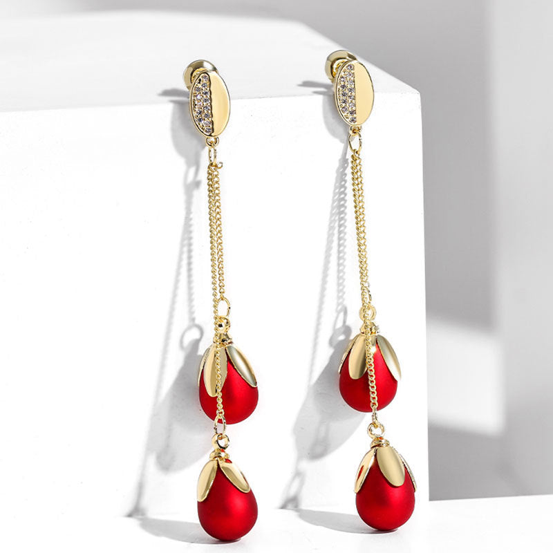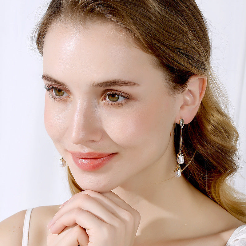 Silver Needle Pearl Long Sweet Earrings